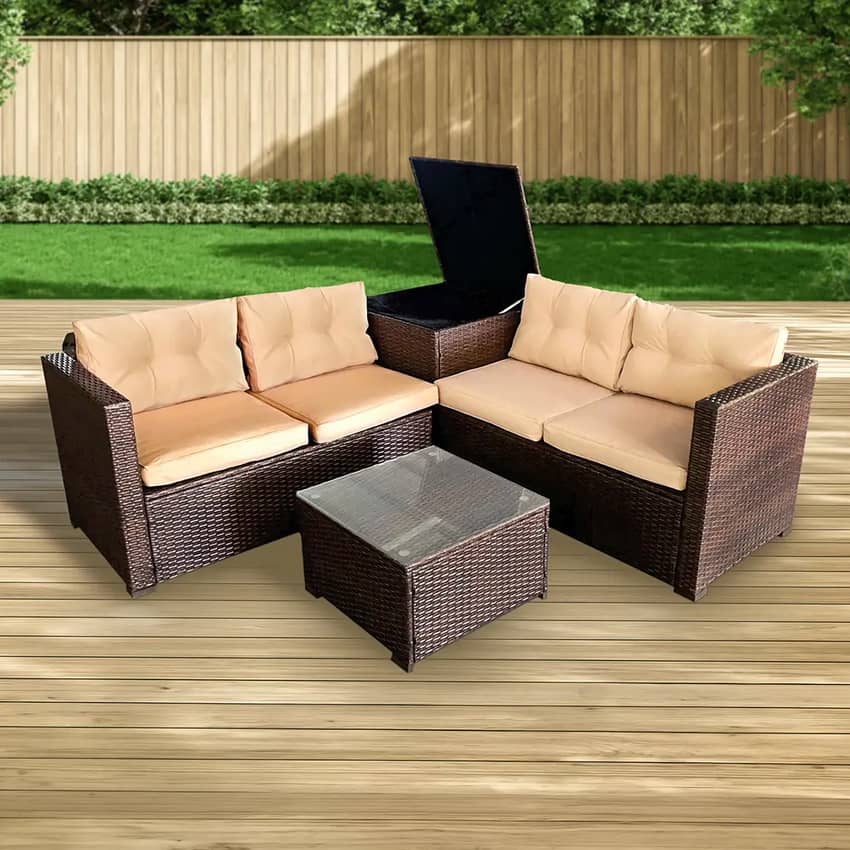 - Features a built-in storage bin to keep cushions or accessories dry and tucked away.