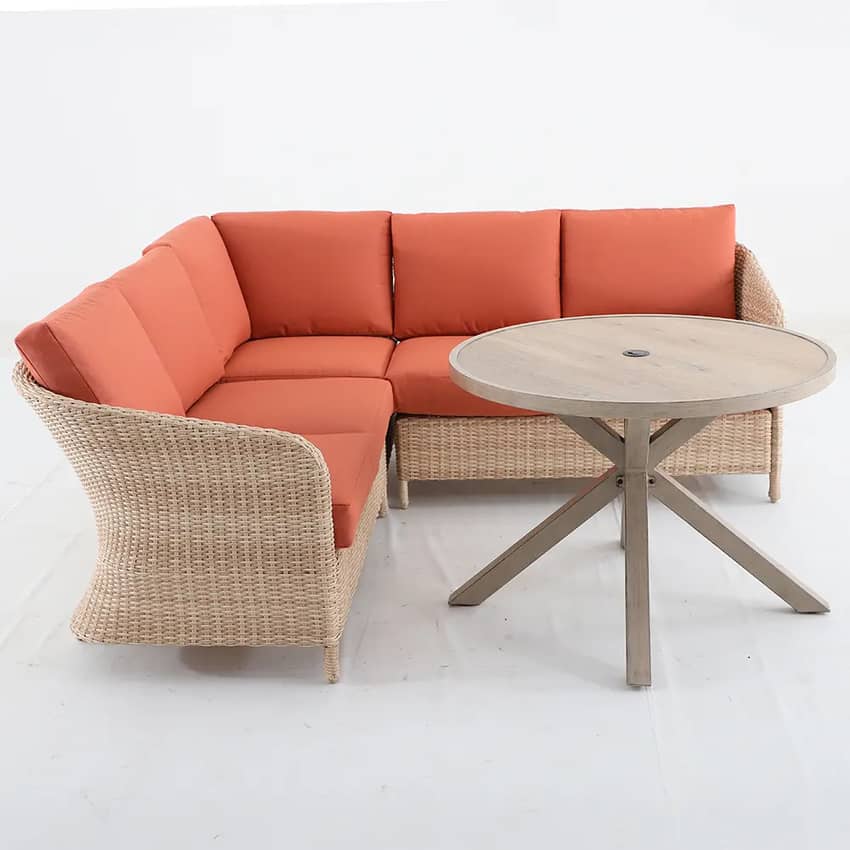 Hampton Bay Camden Point Resin Wicker Sectional Dining 4-Piece Set, Tan/Orange