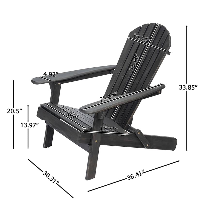 The Folding Adirondack Chair in Dark Gray brings a rugged, natural beauty to your outdoor space, blending a rustic aesthetic with a modern finish. Made from premium acacia wood, this hardwood offers a sleek, exotic look that naturally withstands the elements and maintains its color without darkening over time. The solid, heavy frame is built to resist daily wear and tear, while the traditional Adirondack slatted seating promotes excellent air circulation and body heat ventilation for maximum comfort. For added convenience, a smart folding design makes it easy to transport or store seasonally. A simple yet outstanding design that invites everyone to sit back and enjoy the great outdoors, this chair measures 30.31 inches long, 36.41 inches wide, and 33.85 inches high.