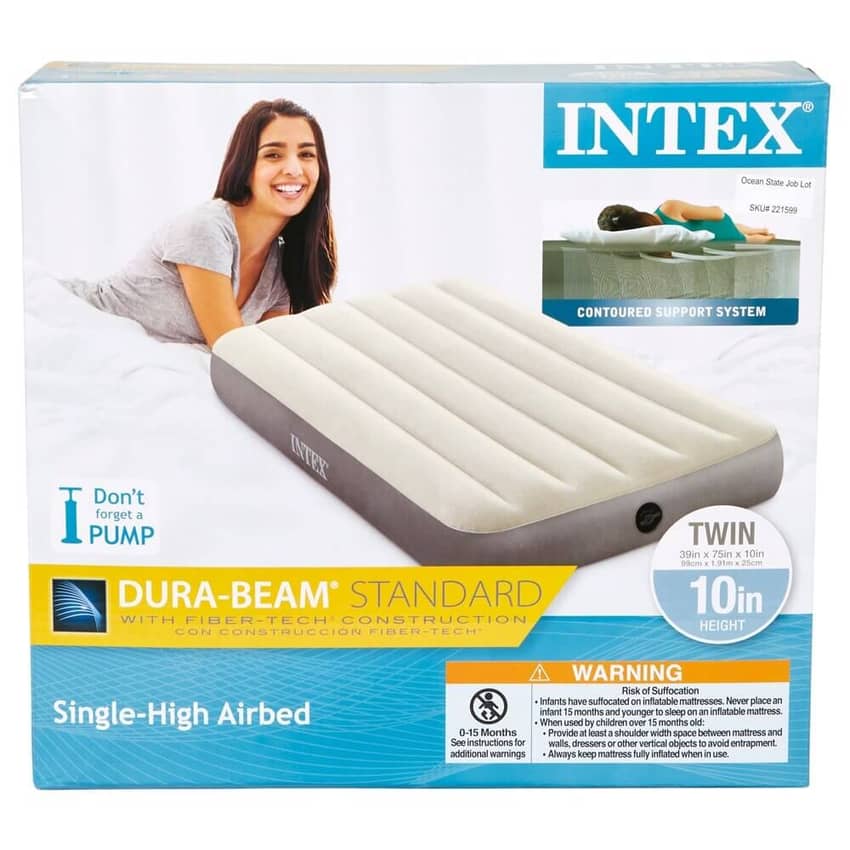 The Intex Deluxe Single-High Dura-Beam Airbed is perfect for home or outdoor use. This ultra-lightweight bed provides ideal firmness and support for an incredible night's sleep. Engineered with Fiber-Tech Technology, which is comprised of thousands of high-strength polyester fibers, this airbed provides enhanced comfort, stability, and support. The sleeping surface is covered in a quality tested soft flocking and sides with vinyl bottom for extra comfort.
