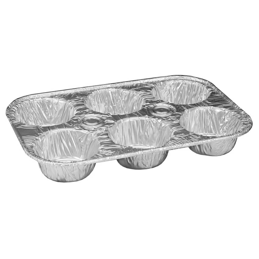 A Disposable Aluminum Muffin Pan is perfect for baking up a batch of delicious muffins or cupcakes. With six cups, you can easily make a variety of treats. The pan's convenient size fits comfortably in most ovens, and the disposable design eliminates the need for tedious cleanup. Enjoy fresh, homemade muffins without the hassle. Each muffin pan measures 9.94 inches wide, 6.69 inches long, and 1.38 inches high.