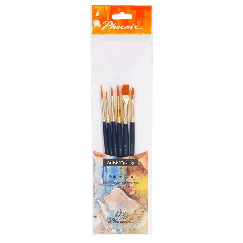 Phoenix Artists' Quality Golden Nylon Brushes, 6 Count