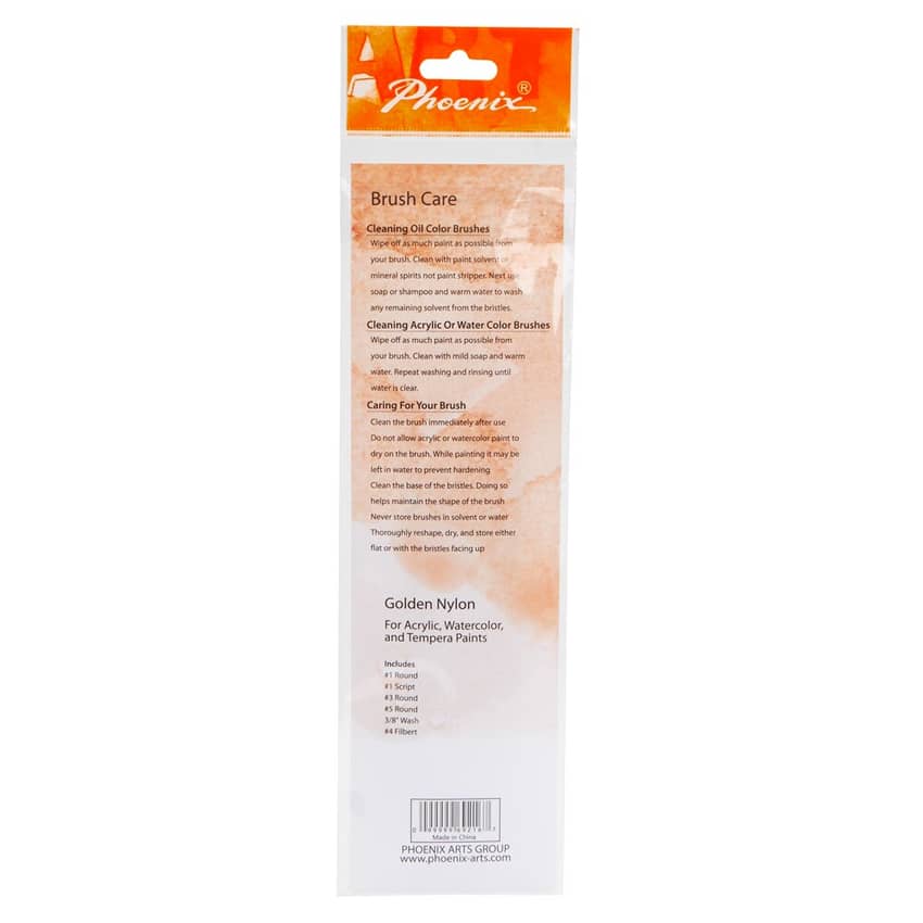 Phoenix Artists’ Quality Golden Nylon Brushes, 6 Count