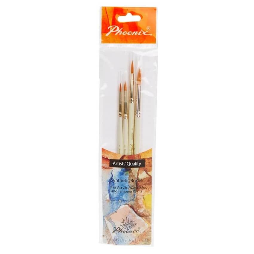 Phoenix Artists’ Quality Synthetic Bristle Brushes, 4 Count