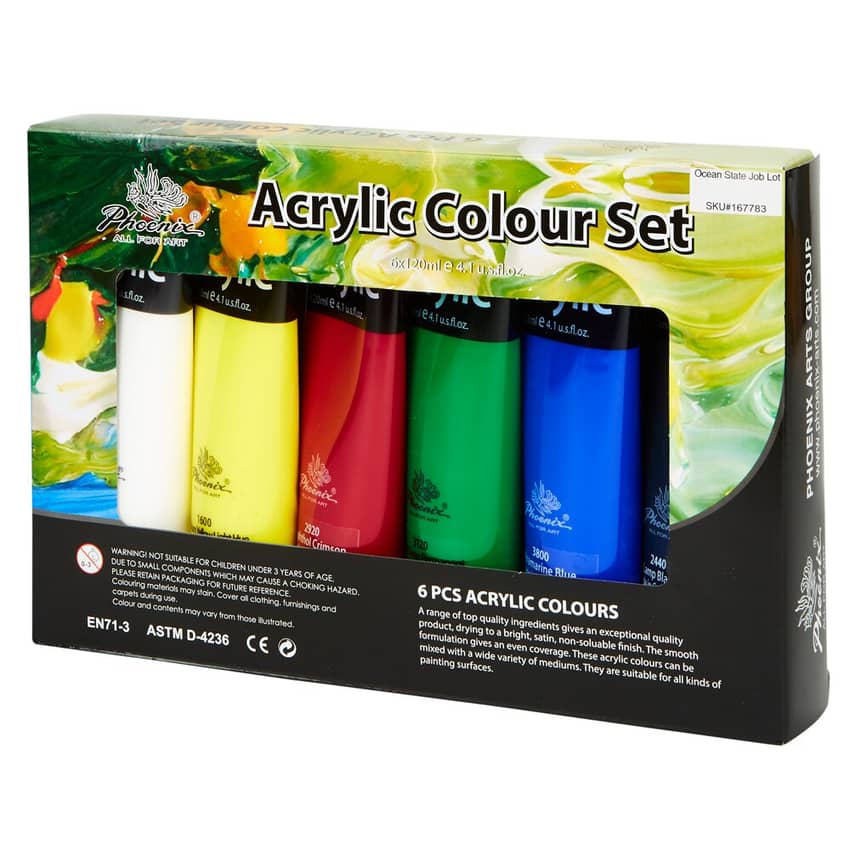 - Includes 1 each of the following colors, Titanium white, Lemon yellow, Crimson, Sap green, Ultramarine blue, and black