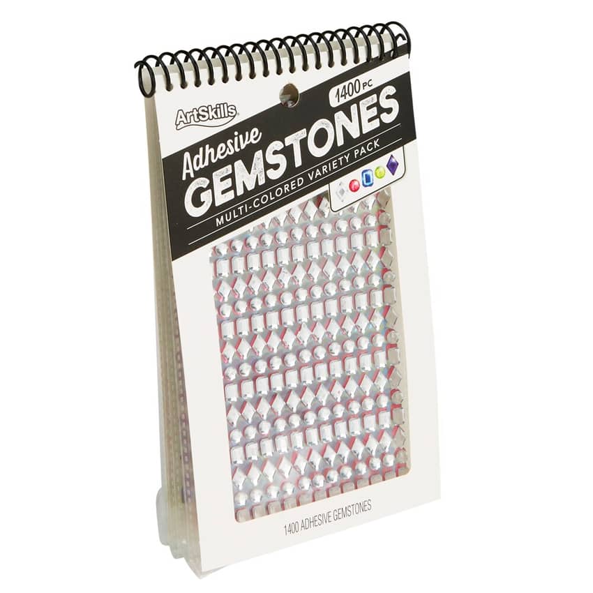 Add bling to any project with ArtSkills Gemstone Variety Pack. This organized gemstone book includes 1400 gemstones in three different shapes and five different colors. Each gem is easy to apply to every project with its convenient peel-and-stick adhesive back. This variety pack should be a staple in every project maker's supply Includes 1400 gemstones in three different shapes. Five sparkling colors included in one pack: Clear, Pink, Green, Blue, Purple. Convenient Peel-and-Stick adhesive back. Organized in a compact flip over book for easy storage in a drawer or your craft materials box!