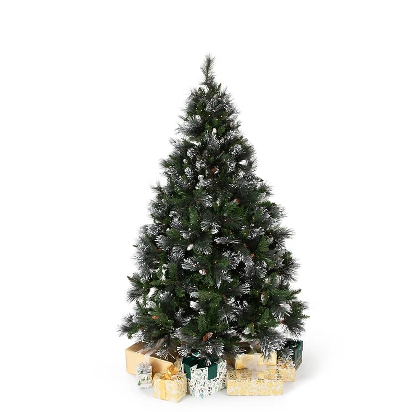 - Perfectly mimics the lush texture and vibrant color of a real carolina pine. Frosted, snow-covered tips and pine cones give it a freshly dusted, wintry appearance