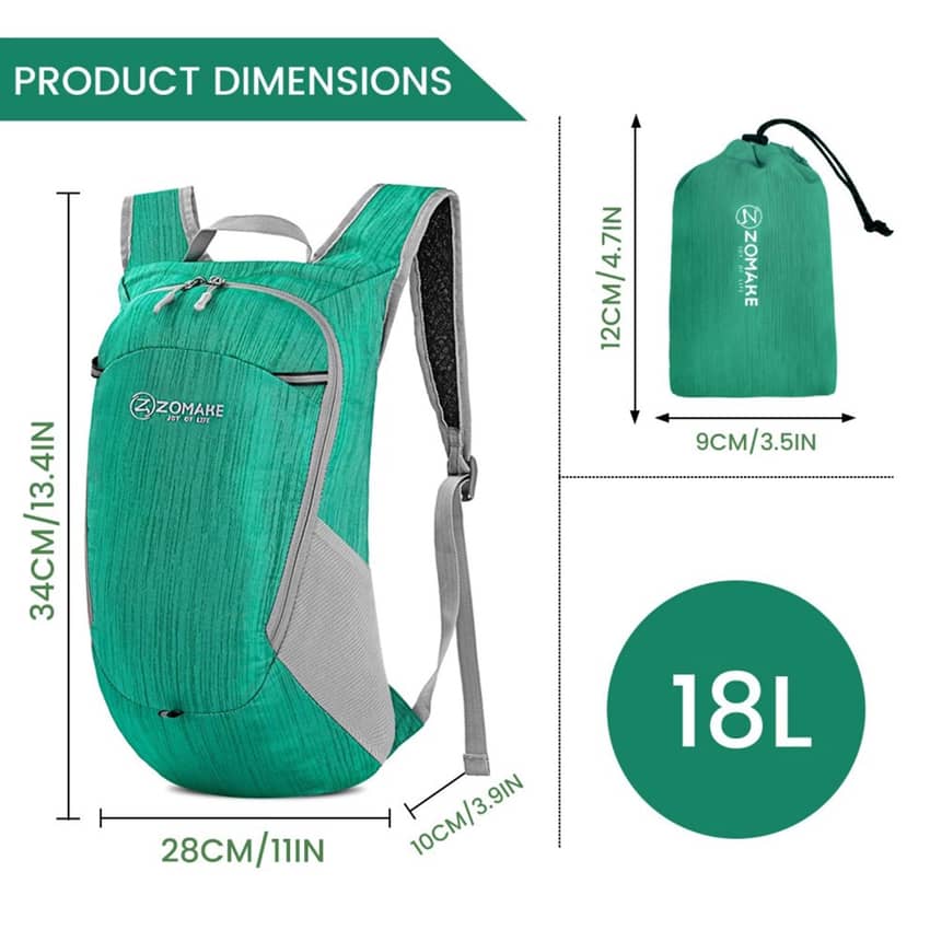 ZOMAKE Ultra Lightweight Packable Backpack, 18L, Dark Green