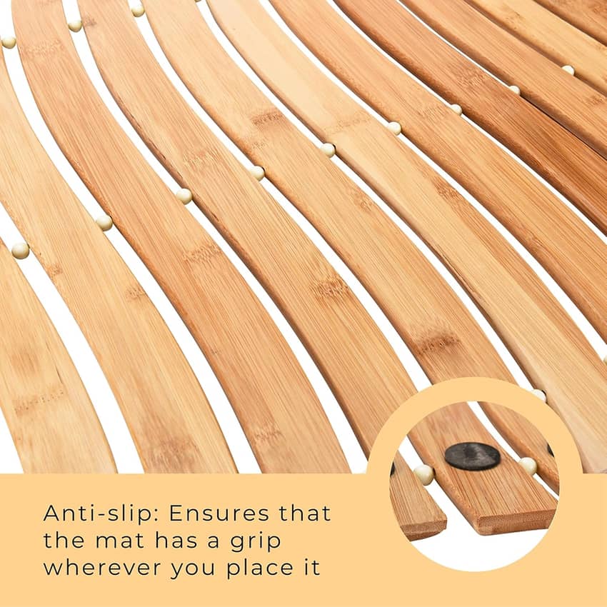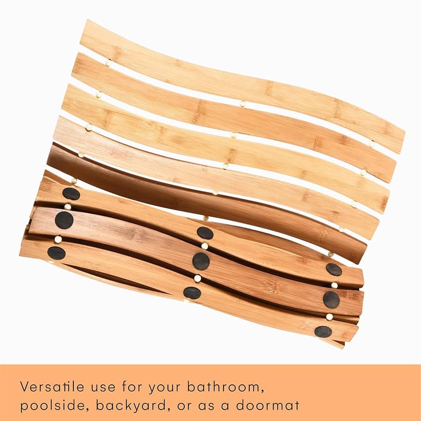 - Perfect for your bathroom, poolside, backyard, or even as a doormat, this bamboo bath mat is a versatile addition to your living spaces