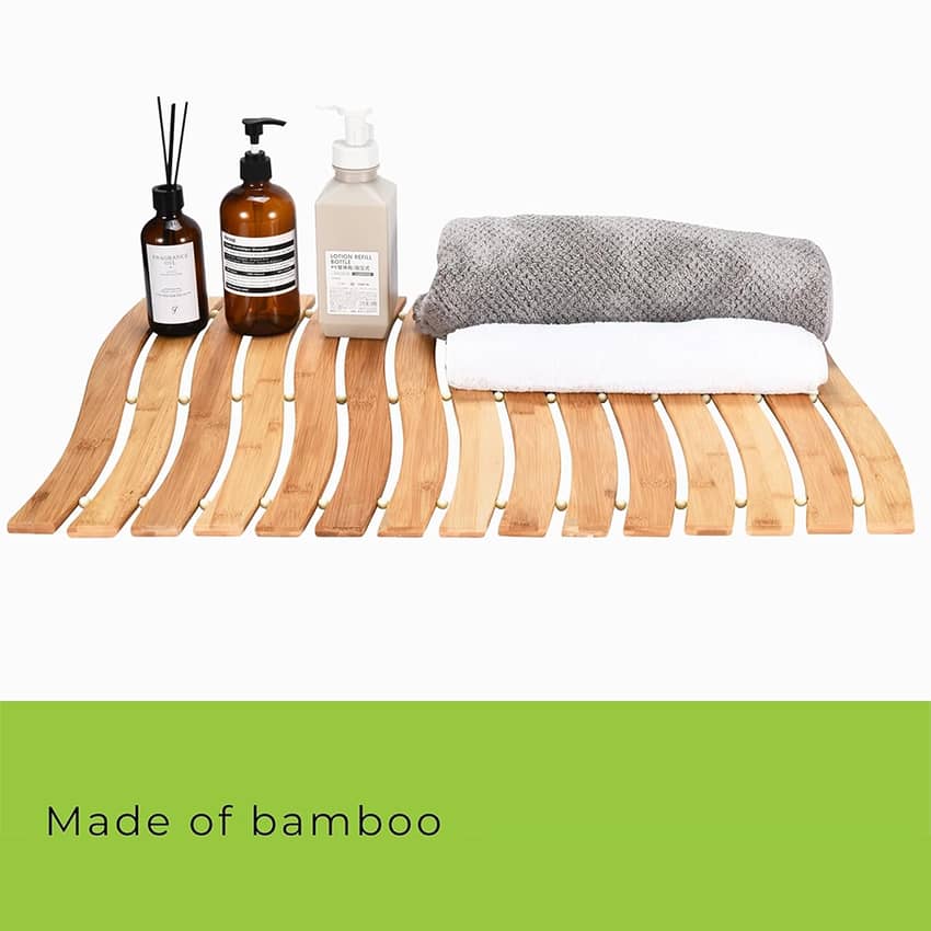 - Crafted from natural bamboo, this shower mat brings a touch of nature to your indoor and outdoor settings