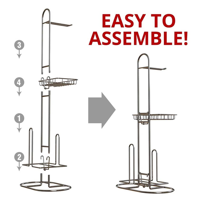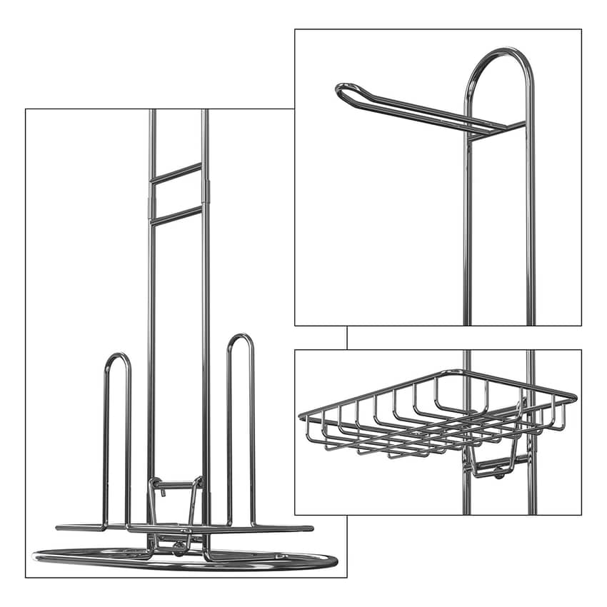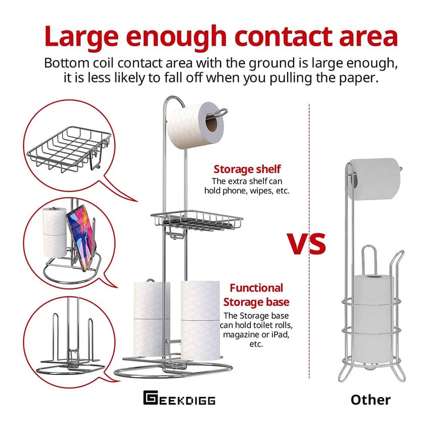 - Single roll dispenser, with toilet paper storage tower which can hold up to 4 spare toilet rolls, and the detachable basket for cell phone or something small. Storage base which can hold toilet rolls, magazine and iPad