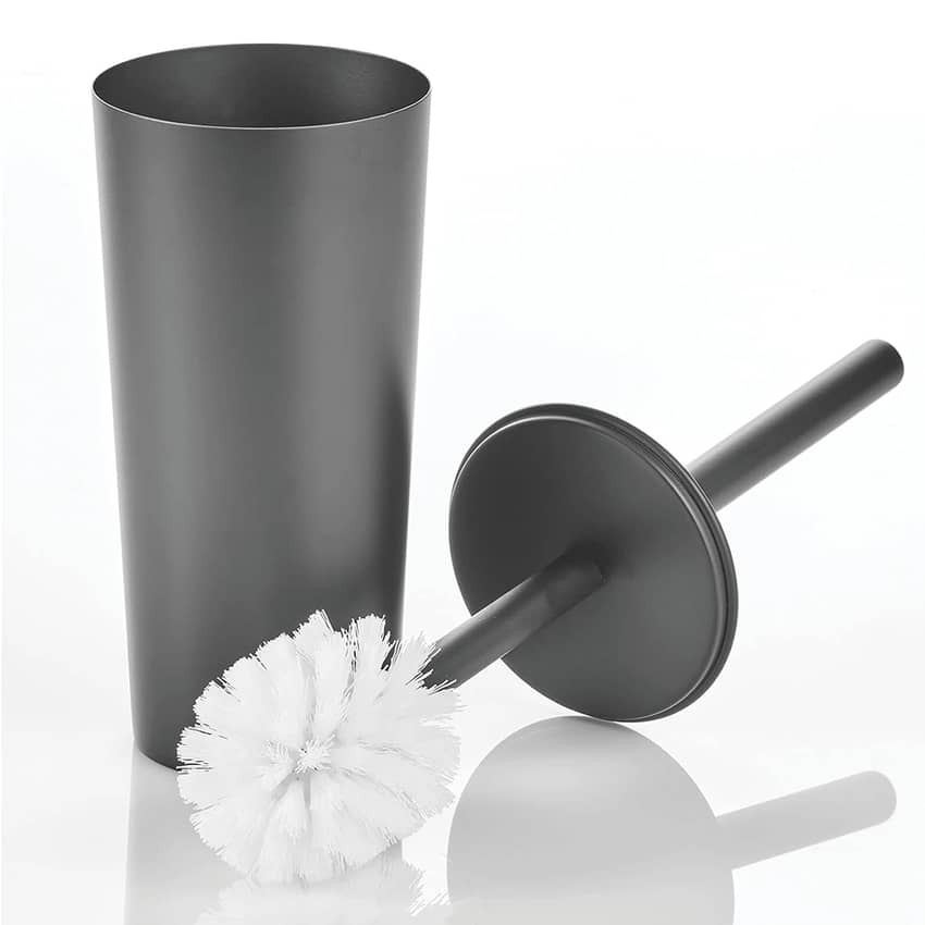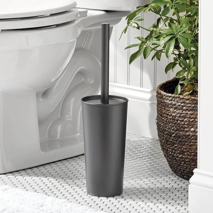 - Toilet brush with a tall, slim holder provides simple and discreet storage that keeps floors clean and dry; Takes up very little floor space and tucks neatly beside the toilet