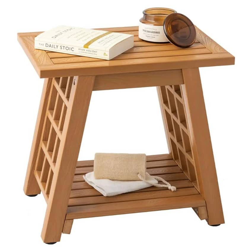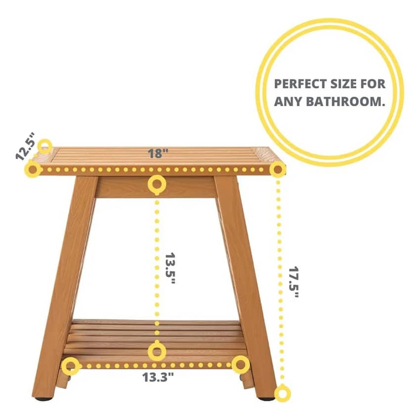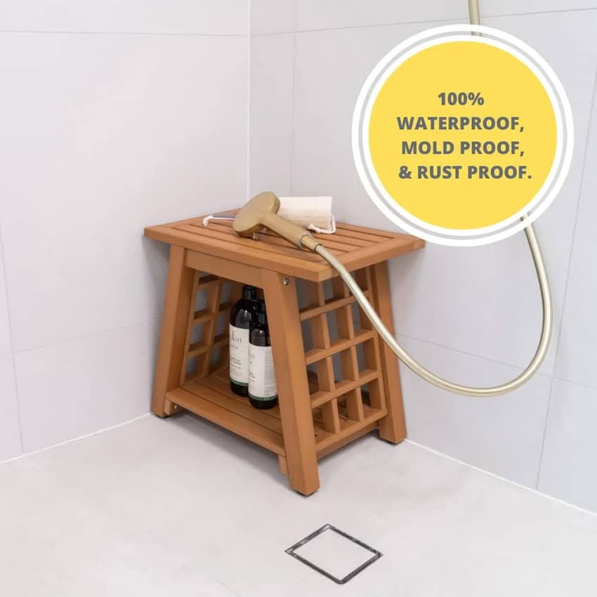 ROHKEX Waterpoof Shower Bench with Storage Shelf, Tan