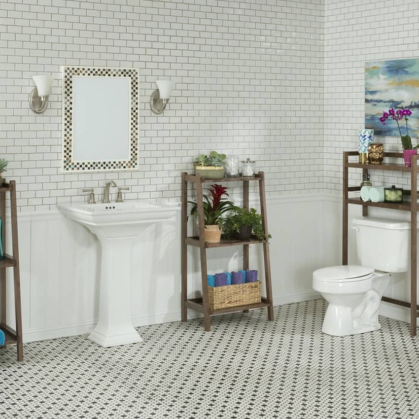 - 2-tier version leaves more wall space above the unit for a mirror, wreath, picture or other decors
