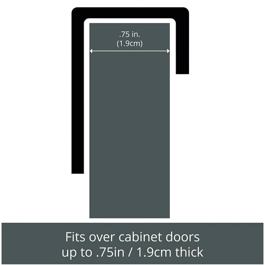 - Hangs over kitchen cabinets for hassle-free installation with no hardware or tools required; Fits over most cabinet doors and drawers; Cabinets stay scratch and damage free with the soft foam backing on over door hooks