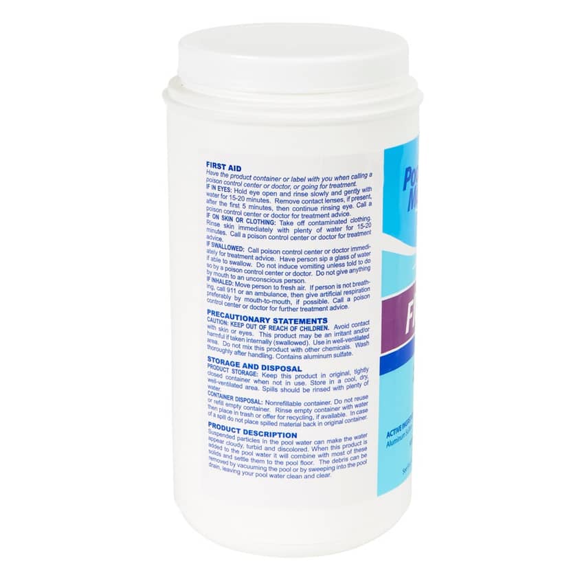 - Settle suspended particles in pool water to pool bottom for vacuming