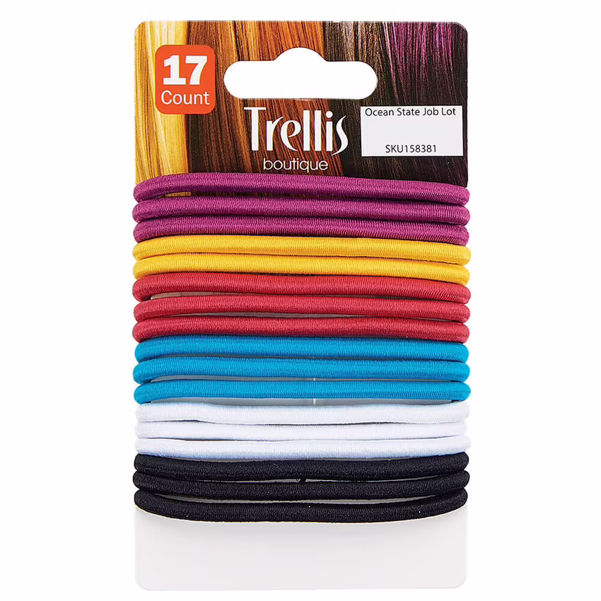 This set of 17 Trellis Boutique Hair Elastics offers a vibrant mix of colors, adding a touch of personality to any hairstyle. Whether you're creating intricate braids, sleek ponytails, or casual updos, these versatile elastics will be your go-to accessory.