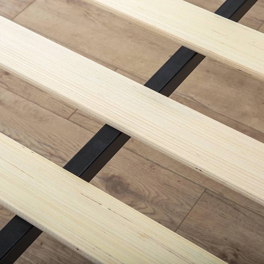 - The clean lines of the metal frame add a touch of modern style to your bedroom, while the wooden slat foundation works well with or without a box spring