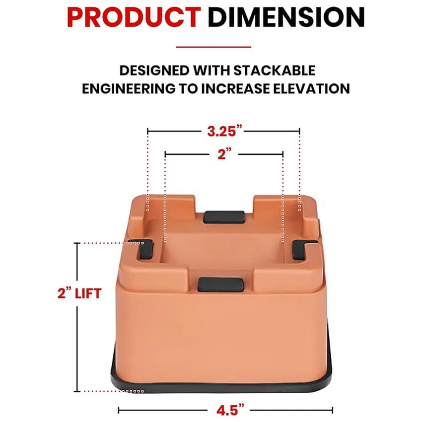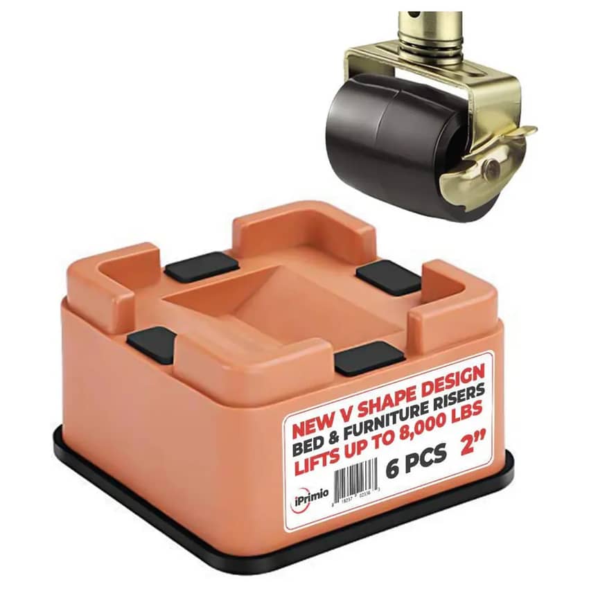 Elevate your furniture and improve airflow with this six pack of iPrimio 2-inch V Shape Square Bed and Furniture Risers in Brown. These sturdy risers are made from strong, durable ABS plastic and designed to support up to 8,000 pounds, making them suitable for a wide range of furniture, including beds, sofas, and appliances. The unique V-shape design provides excellent stability and prevents rocking, while the fully padded bottom protects your floors from scratches and scuffs. These stackable risers are easy to install and remove, allowing you to adjust the height of your furniture as needed.