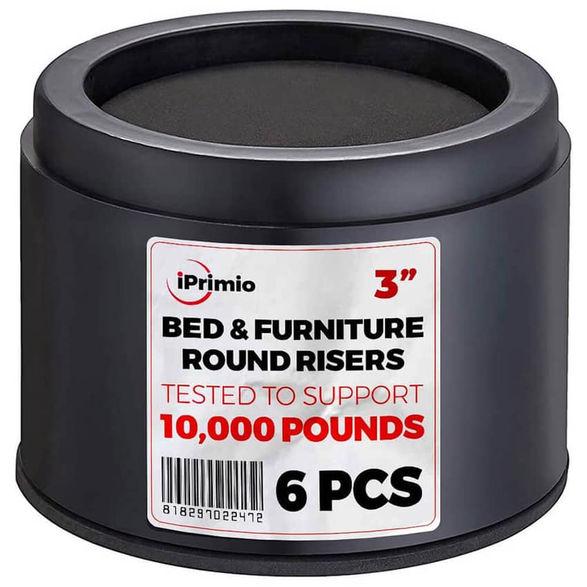 - iPrimio 3-Inch Lift Round Bed Risers, Set of 6, Black