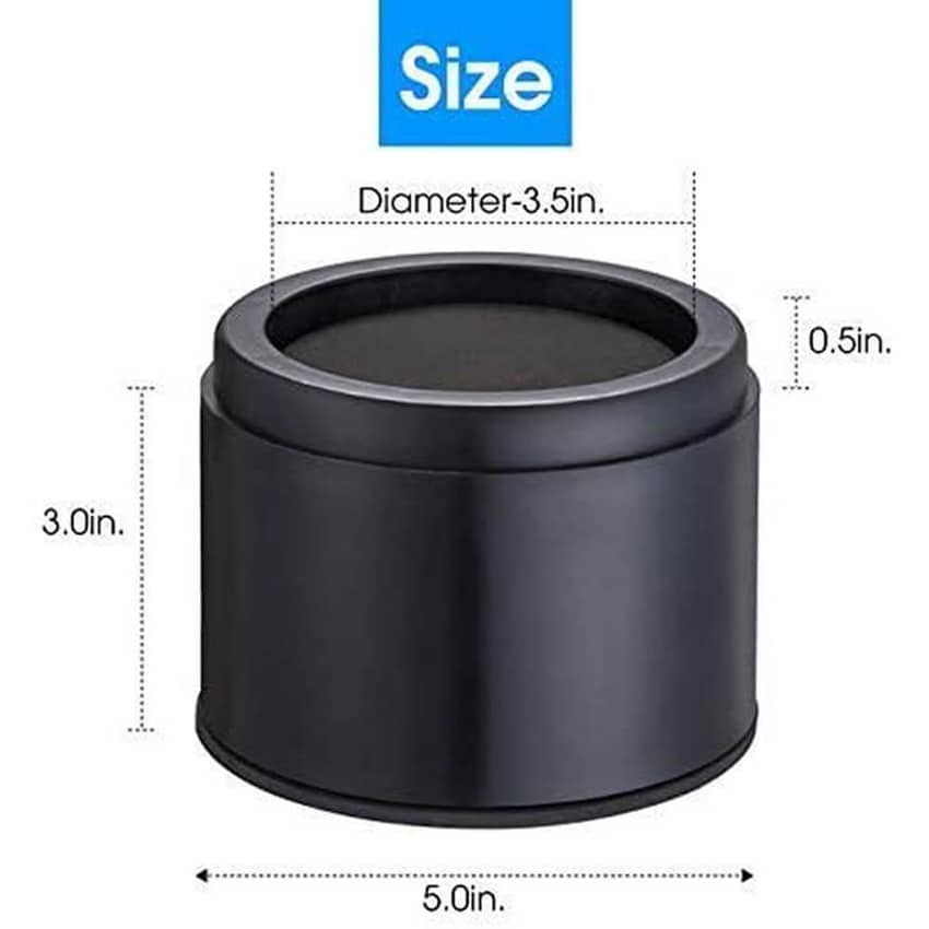Elevate your bed or sofa with this set of six iPrimio three-inch round bed risers. These stylish and practical risers not only enhance the aesthetics of your furniture but also provide valuable storage space underneath. With a maximum elevation of up to three inches per riser, these bed risers offer unparalleled lift-over support, capable of handling over 10,000 pounds per leg. Crafted from durable ABS plastic, these bed risers are built to last. The heavy-duty construction ensures they can safely bear the weight without denting or cracking hardwood or other hard surfaces. The fully padded bottom of each riser adds an extra layer of protection, preventing any damage to your floors. Designed with an extremely solid design, these bed risers feature a top foam pad that effectively prevents rolling. This feature is especially useful for furniture with caster wheels, ensuring stability and preventing unwanted movement. These bed risers can be used with a wide range of home furniture. Whether you want to raise your desks, chairs, sofas, caster wheel furniture, or beds, these risers are up to the task. Each riser measures five inches wide by three inches high.