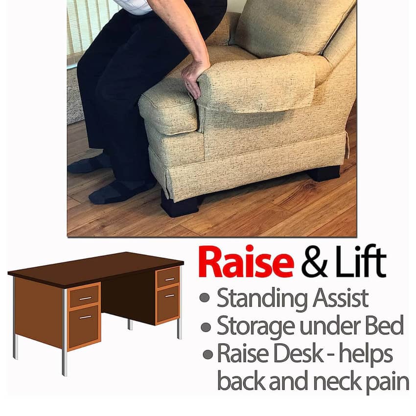 - Multi-Utility Fits On Most Home Furniture: This home furnishing accessory fits into raising up desks, chairs, sofas, caster wheel furniture, and beds. Its strength can handle heavy-duty furniture and protects your floors, giving you storage space
