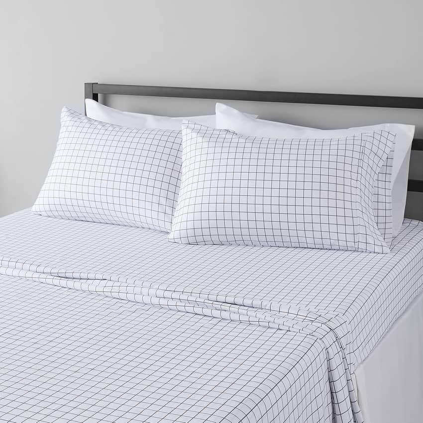 Lightweight Super Soft Microfiber Sheet Set, Queen, Blue/Gray Windowpane
