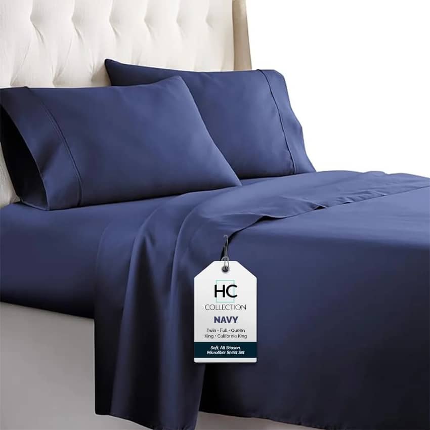 HC Collection 3-Piece Microfiber Sheet Set, Twin, Navy