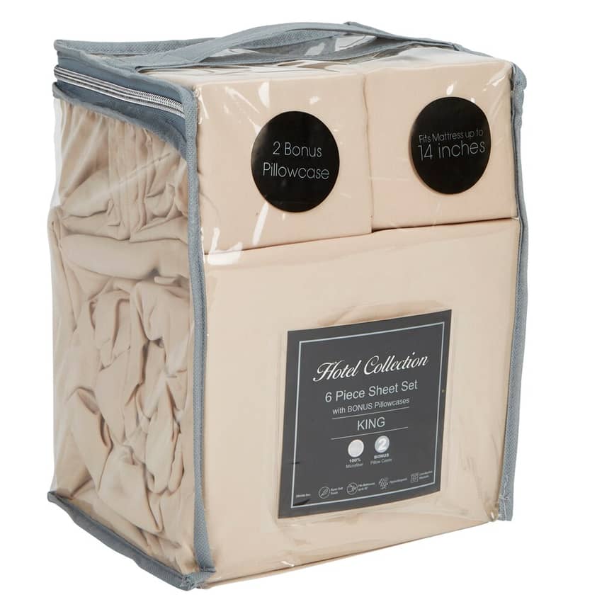 - Includes 1 fitted sheet, 1 flat sheet, 2 pillowcases PLUS 2 bonus pillowcases