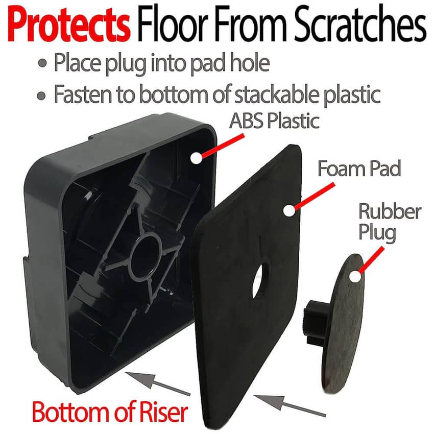 - Patent Pending Durable ABS Plastic Made Stackable Riser With Fully Padded Bottom: To increase the elevation, the furniture risers are designed with stackable engineering to securely stack the heavy-duty riser on the additional riser to safely handle the weight without occurring any dent or crack on hardwood or hard surfaces