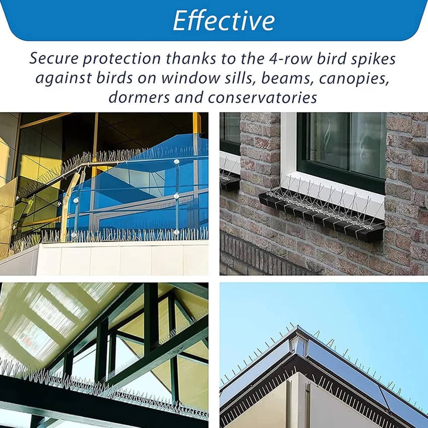 - Made from rustproof stainless steel with a UV-resistant polycarbonate base plate, our bird spikes ensure lasting protection, maintaining effectiveness even under harsh weather