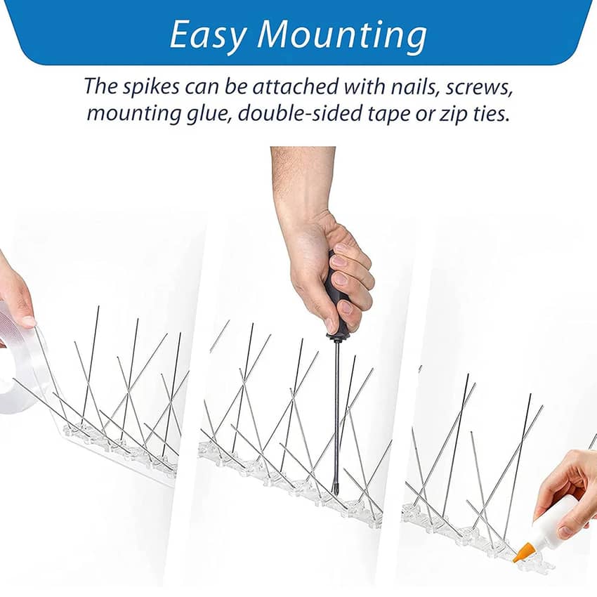 - Easily attach with nails, screws, or glue; the bird deterrent spikes click together without the need for tools, ensuring convenient assembly and swift & effective bird protection