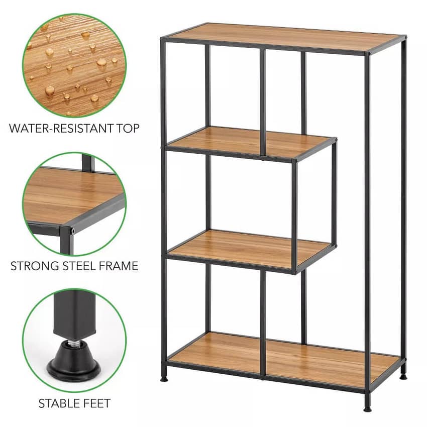 - mDesign Mid-Century 4-Tier Storage Bookshelf, Black/Nordic Walnut