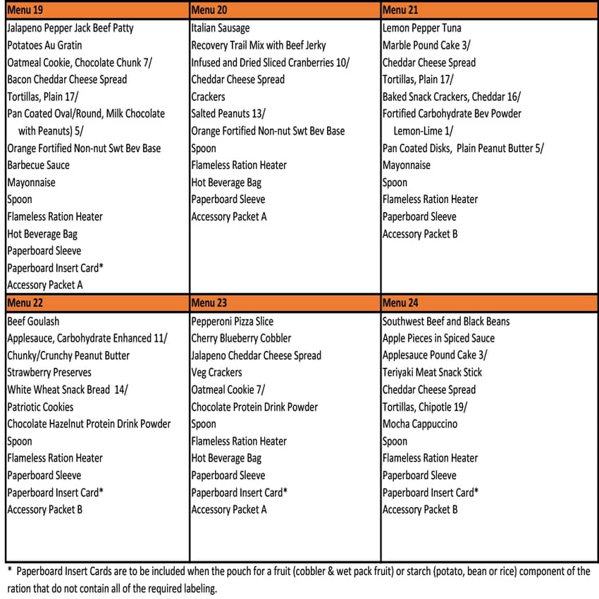• Average of 1250 calories per meal, designed for maximum endurance.