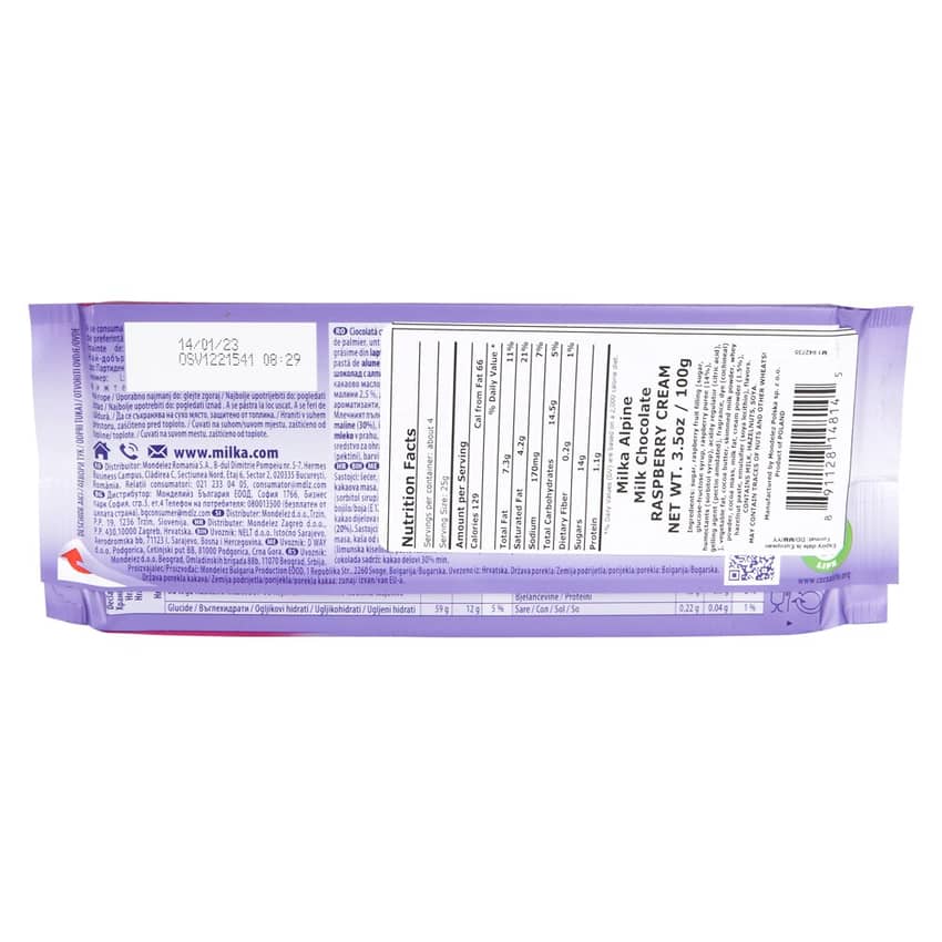 - Milka German Milk Chocolate with Raspberry Cream