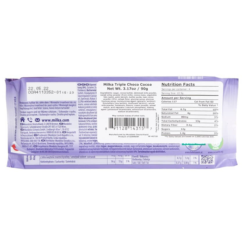 Milka German Triple Cocoa Chocolate, 3.17 oz