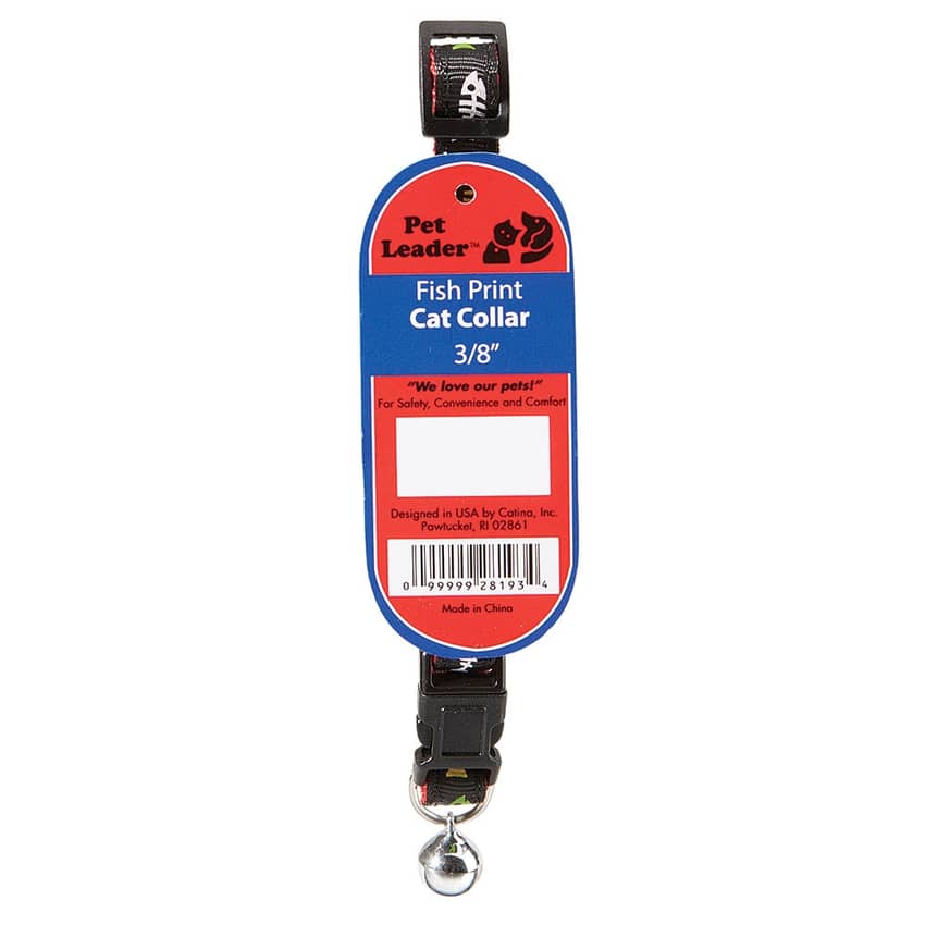 Pet Leader 3/8" Adjustable Cat Collar with Fish Print