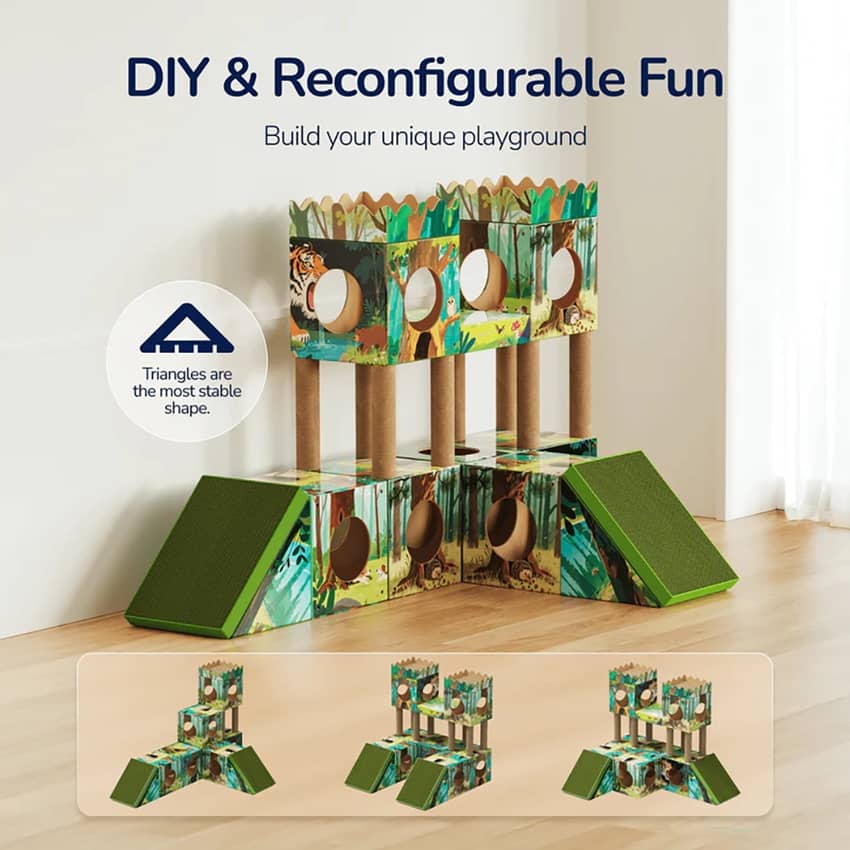 PalNests Large 3-in-1 Modular Cardboard Cat Tree & Scratcher House, Jungle