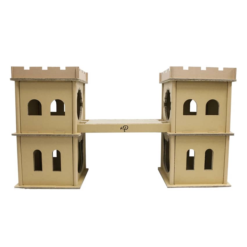 The Petique London Bridge Cat House offers a safe, multi-level sanctuary for your feline friends while remaining deeply committed to environmental sustainability. Built from 100% non-toxic, recycled, and compressed cardboard, these strong panels serve as a superior wood alternative that is completely free of formaldehyde, making the structure light, sturdy, and entirely safe even if accidentally ingested. This three-level playhouse is designed to accommodate multiple cats comfortably, featuring several integrated scratch boards to satisfy their natural instincts. Assembly is a breeze with no tools required. The materials are fully biodegradable and compostable, so you can feel confident that you are protecting both your pets and the planet. This cat house measures 59.5 inches long, 18 inches wide, and 32.9 inches high.