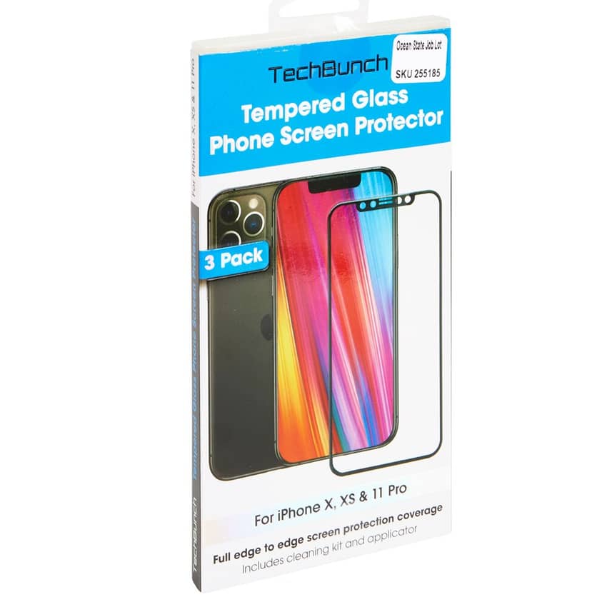 TechBunch Tempered Glass iPhone X, XS, and iPhone 11 Pro Screen Protectors, 3-Count
