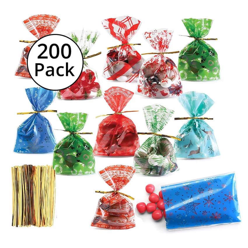 - Bulk pack of Christmas Cellophane Bags, great as Christmas Cookie Bags, Christmas Treat Bags, Christmas Gift Bags, Stocking Stuffers, Goody Bags and Holiday Party Favors