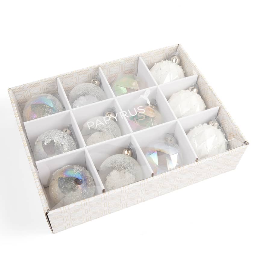Famous Brand Crystal Christmas Glass Ornament Set, 12 Pack
