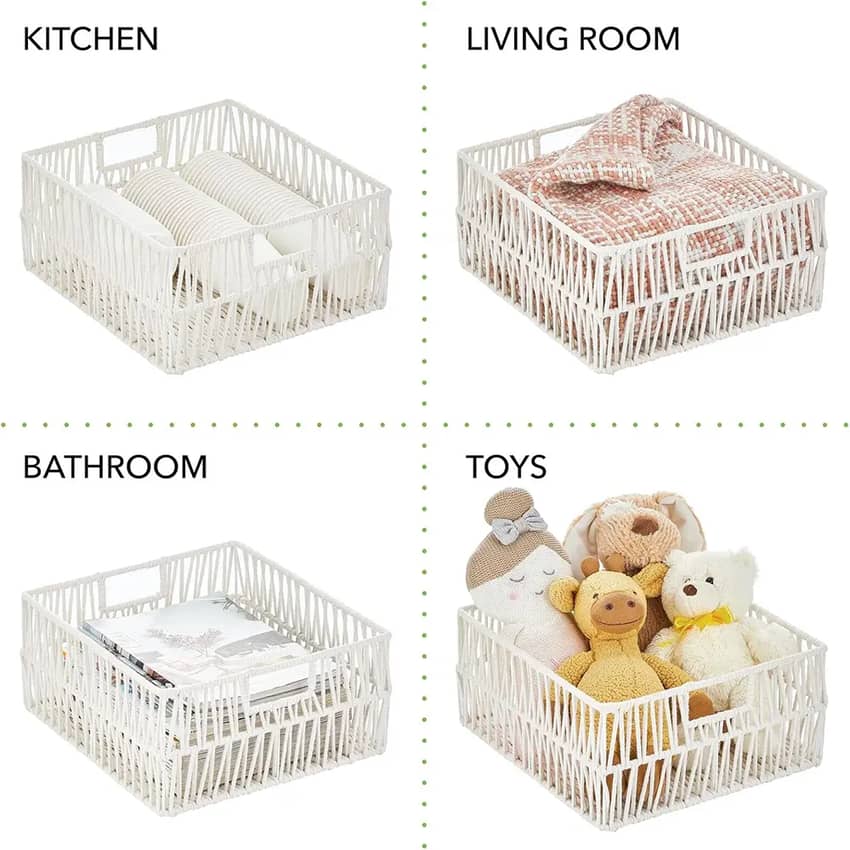 - Decorative and functional, these stylish baskets are great in living rooms, family rooms, and mudrooms