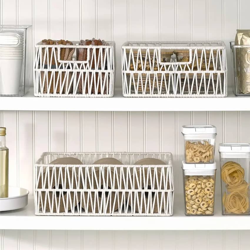 - These decorative baskets keep kitchen clutter under control by storing all of your kitchen and pantry essentials