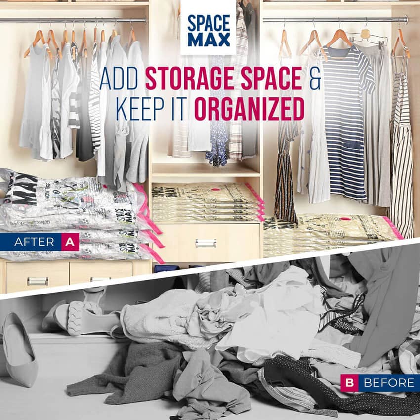 - Increase Your Storage Space: You can add storage space without having to clean out your closet! Our SPACE MAX vacuum bags are an ideal solution for adding more storage space to your wardrobes, closets, garages, basements, lofts, and suitcases