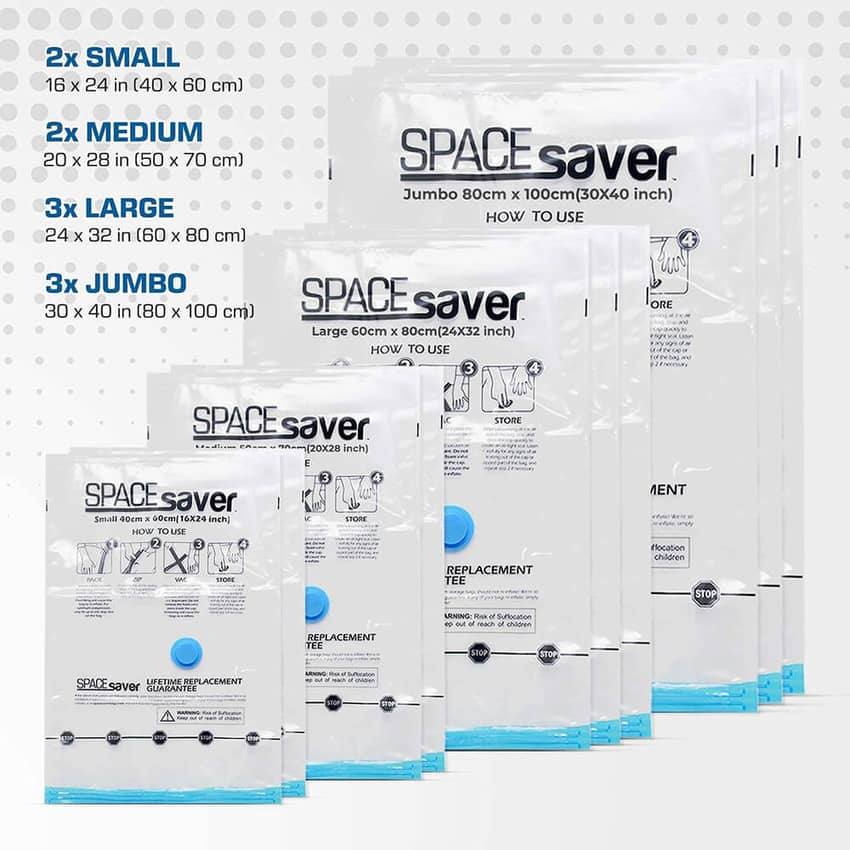 - Spacesaver Premium Space Saver Vacuum Storage Bags Variety Pack, Small, Medium, Large, & Jumbo, 10-Pack