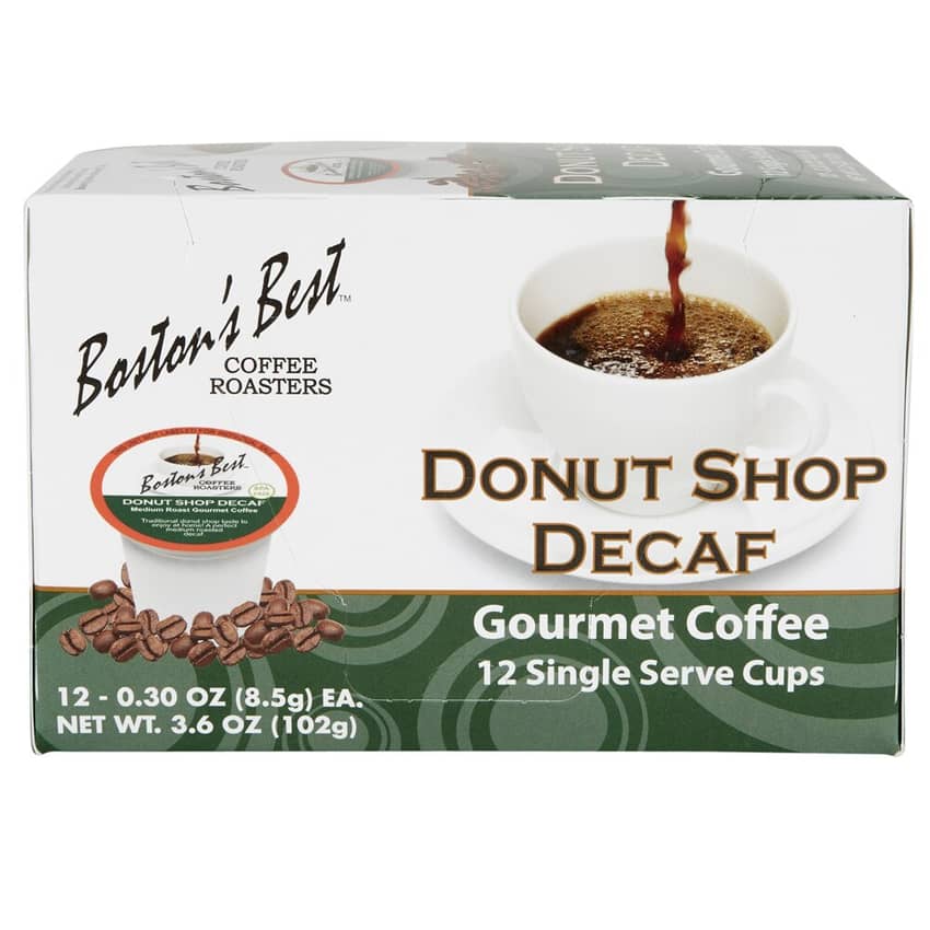 Boston's Best Medium Roast Donut Shop Decaf Gourmet Coffee Cups offer the rich, satisfying taste of a classic donut shop brew without the caffeine. Made with 100% Arabica coffee beans, these single-serve cups are compatible with all popular brewing systems. Enjoy a delicious, decaf cup of coffee that's also gluten-free and non-GMO. With 12 convenient single-serve cups in each package, it's easy to savor the flavor.