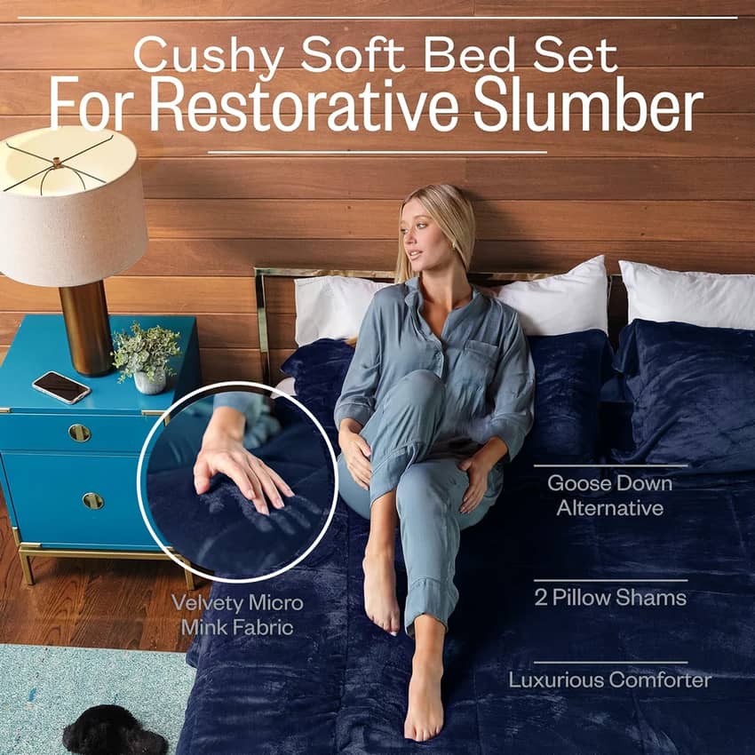 Sleep Restoration Micromink Goose Down Alternative Comforter Set, Full/Queen, Navy