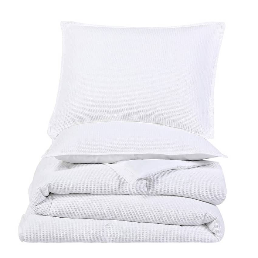 WellBeing by Sunham Waffle Weave 3-Piece Comforter Set, Full/Queen, White