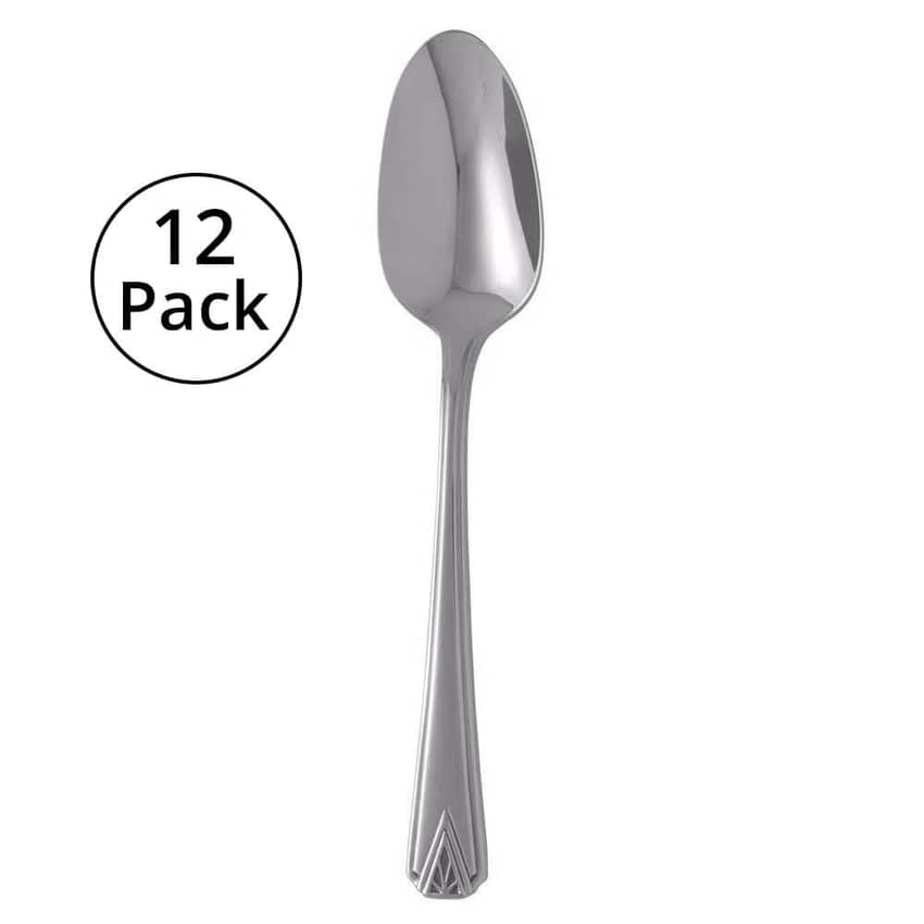 Indulge in a touch of vintage glamour with the Oneida Deauville Teaspoons. This 12-pack set reimagines a classic Art Deco design, adding a touch of contemporary flair with black oxidized geometric patterns adorning the handle tips. The result? Teaspoons that are both elegant and eye-catching, perfect for stirring your favorite tea or coffee, savoring a decadent dessert, or adding a touch of sophistication to your everyday table setting. Crafted from high-quality 18/10 stainless steel, these spoons boast a superb finish and intricate pattern details, ensuring they'll withstand the test of time. Whether you're hosting a grand gathering or enjoying a quiet moment for yourself, the Deauville Teaspoons elevate your experience with their timeless charm and long-lasting durability. Plus, the convenience of being dishwasher-safe makes them ideal for everyday use and effortless cleanup. So, embrace the Art Deco revival and add a touch of vintage elegance to your table with the Oneida Deauville Teaspoons.